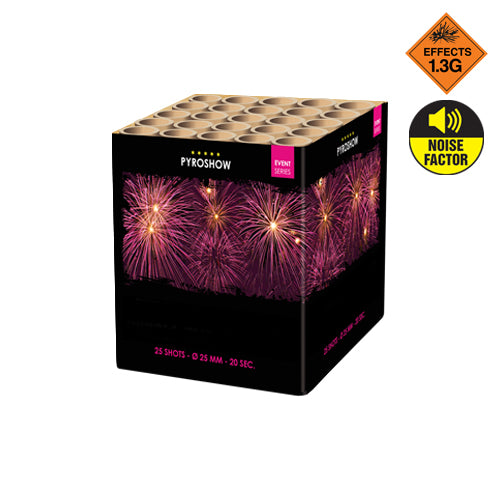 Pink is our new obsession in the Pink Peony with Pink Tail and Mine Pro effect cake. Sending skyward vivid pink cluster mines to bright pink tails. Before wonderful big pink peony stars fill the sky. This professional style category 2 firework is great for gender reveal parties.
